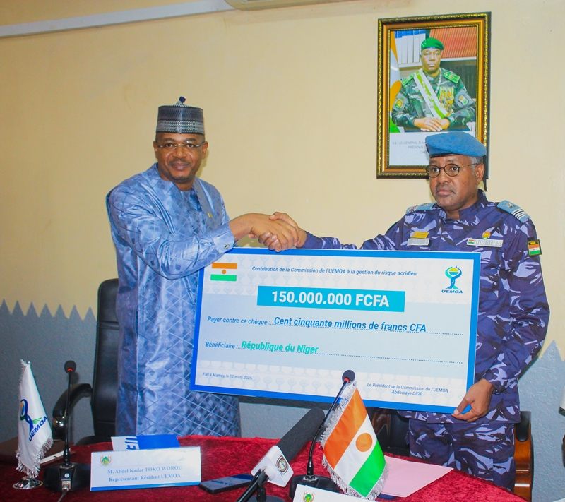 Le Niger renforce son dispositif de lutte contre le péril acridien. Le représentant résident de l’Union économique et monétaire ouest-africaine (UEMOA) à Niamey, Abdel Kader Toko Worou, a remis officiellement ce jeudi 12 Mars 2026, un appui financier de 150 millions de francs CFA au ministère nigérien de l’Agriculture et de l’Élevage. L’objectif est de soutenir les actions de prévention et d’intervention face aux invasions de criquets pèlerins qui menacent régulièrement les cultures dans la région sahélienne.