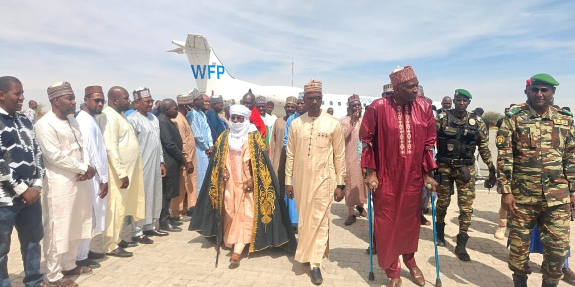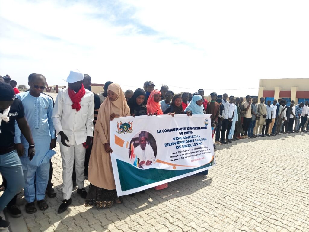 À son arrivée à l’aéroport Tandja Mamadou de Diffa, le Ministre a été accueilli par le Gouverneur de la région, le Général de Division Mahamadou Ibrahim Bagadoma. Plusieurs responsables administratifs et académiques étaient également présents, dont le Recteur de l’Université de Diffa, Dr Moussa Mamoudou Boubacar, le Secrétaire général de la région, le Chef de canton de la Komadougou, ainsi que des représentants des Forces de Défense et de Sécurité et des services techniques de l’État.