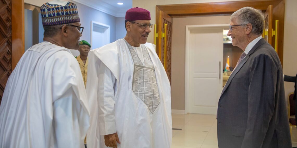 Le Président de la République Mohamed Bazoum a reçu, ce lundi 19 juin 2023 à son cabinet, les fondateurs des fondations Bill et Melinda Gates, M. Bill Gates et de Aliko Dangote.