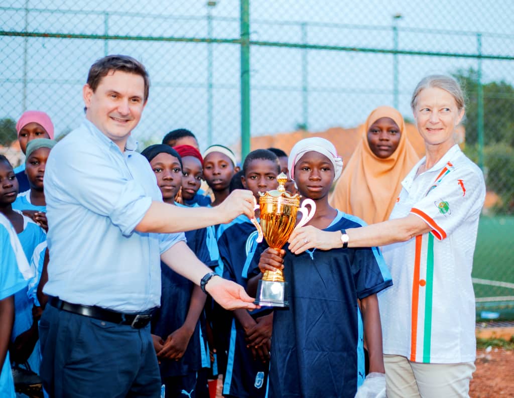 Ce samedi 27 septembre 2025, dans l’enceinte de la Fédération Nigérienne de Football (FENIFOOT) le sport a réuni diplomatie et jeunesse. L’Organisation Non Gouvernementale (ONG) « Les enfants de l’ovale » en partenariat avec l’ambassade du Royaume-Uni et  l’Union européenne, a lancé  sa deuxième édition du mini-tournoi de football destinée à promouvoir l’entente et la coopération. Cet évènement sponsorisé par la FENIFOOT et l’hôtel Bravia a vu la présence de l’ambassadrice du Royaume Uni, Mme Catherine Inglehearn, du Chargé des affaires par intérim de la délégation de l’Union Européenne, M. Olai Voionma, de l’ambassadrice des Etats Unis Mme Kathleen Fitzgibbon, du Président de la Fenifoot M. Issaka Adamou et d’un public amateur de football.