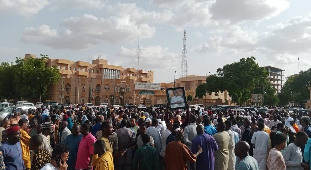 Des dizaines de personnes se sont rassemblées, Cet après-midi, devant l’Assemblée nationale du Niger pour apporter leur soutien au président Mohamed Bazoum retenu depuis des heures par des éléments de la garde présidentielle.