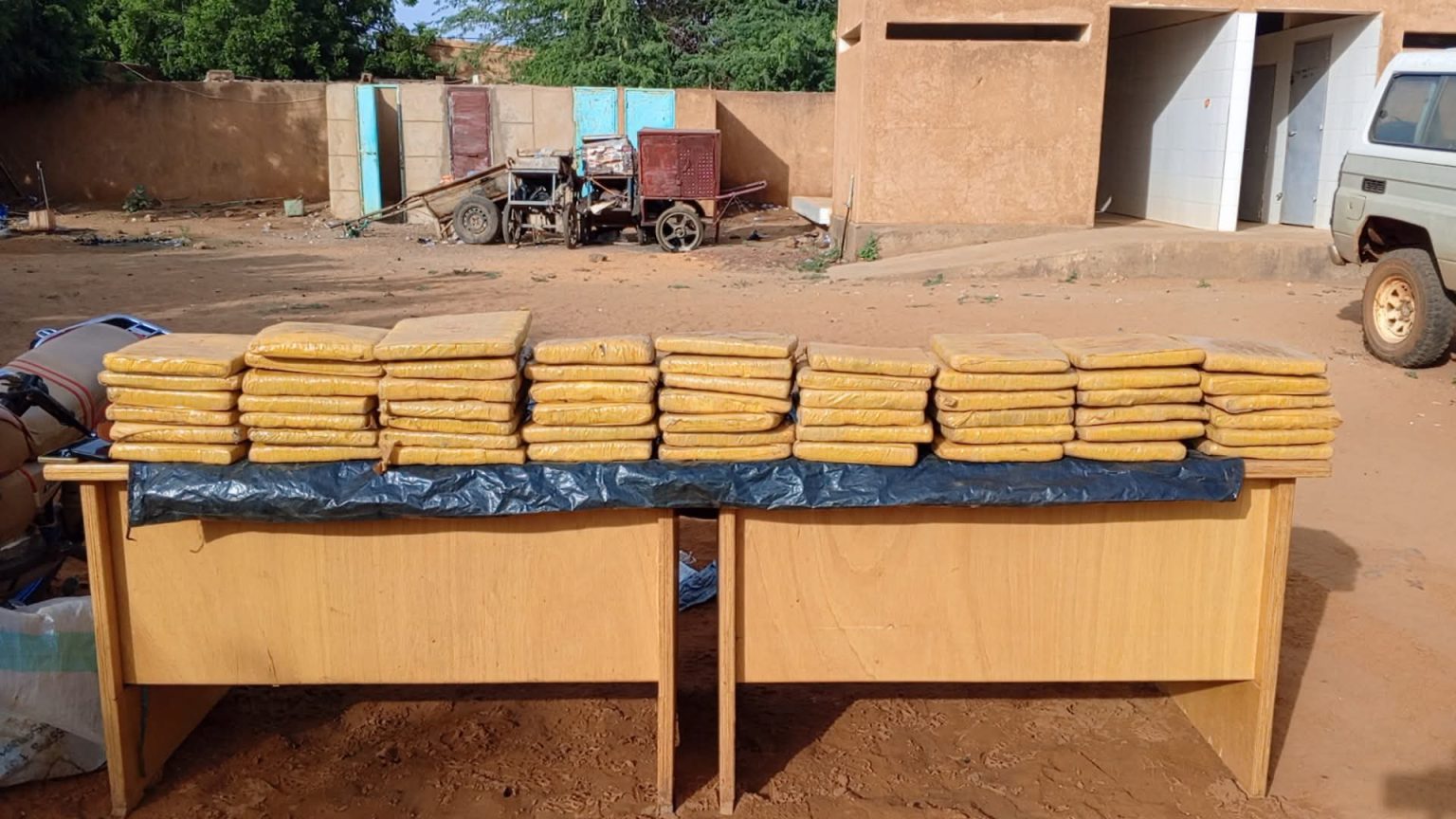 Poursuivant leurs investigations, les enquêteurs ont procédé à une perquisition au quartier Bilbis. Ils y ont découvert 37 autres briques dissimulées dans des tas de tiges de mil, portant la saisie totale à 57 briques. Deux autres individus, également nigériens, ont été arrêtés dans le cadre de l’opération, qui a également permis la confiscation d’une moto et de deux téléphones.